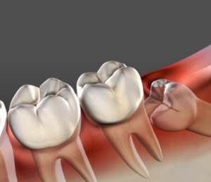 – 親知らずが歯茎の一部からしか見えていない状態です。この場合、周囲の歯に対して圧力をかけたり、虫歯や歯周病のリスクが増加することがあります。